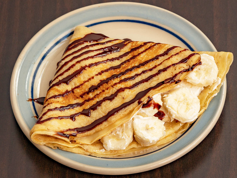 crepa rellena con plátano ,crema y chocolate