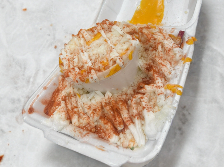 Papitas de eleccion con elote, queso amarillo, queso blanco, crema y chile al gusto