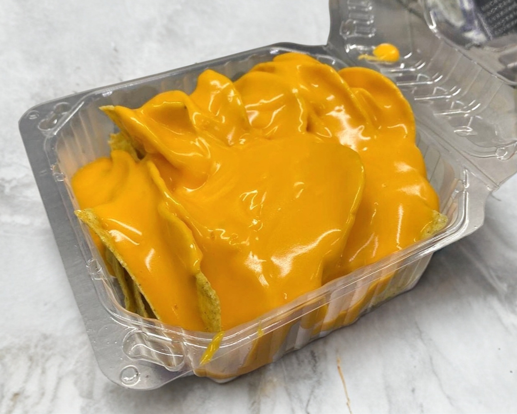 Nachos con queso amarillo, queso blanco, crema y chile al gusto