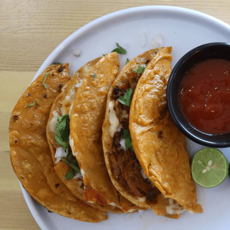 Quesadilla de maiz rellena de carne de birria