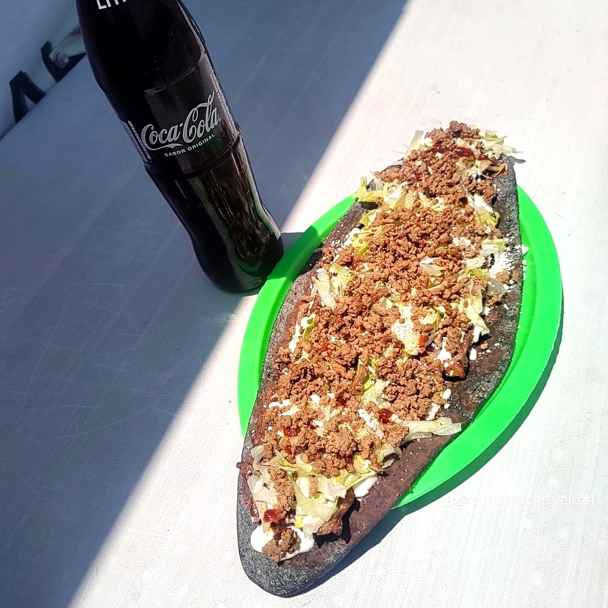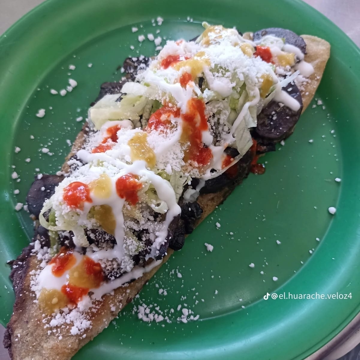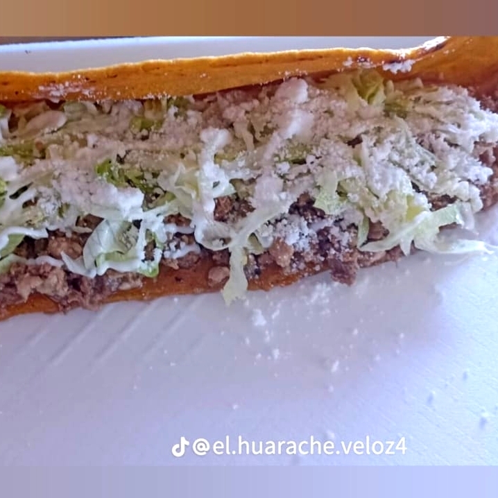 Tradicional huarache gigante con deliciosa longaniza doradita.