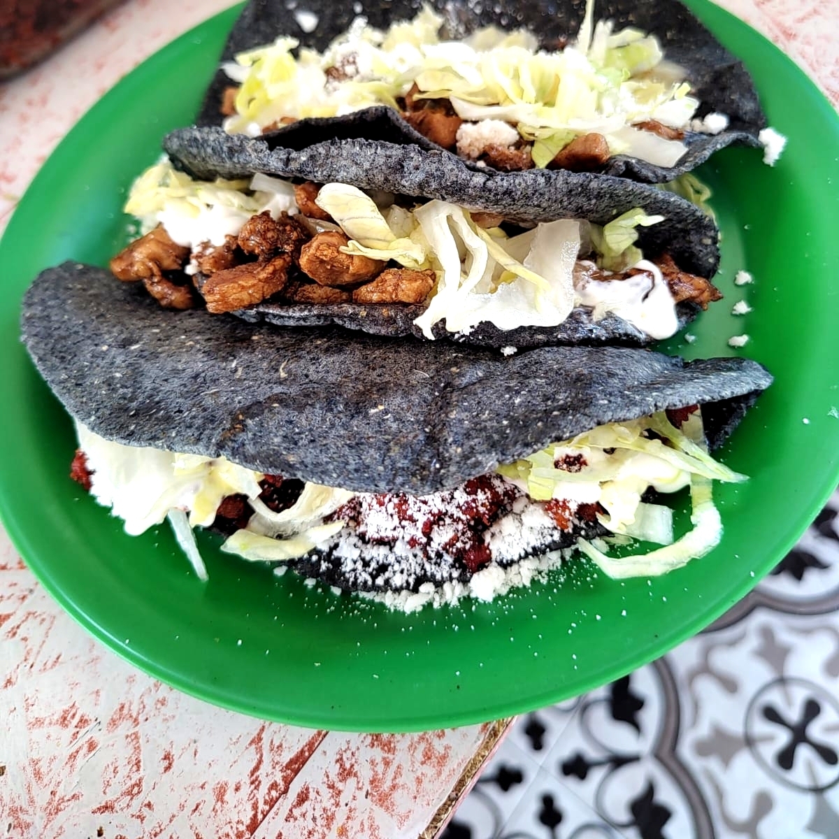 Tinga de pollo con crema, queso y lechuga, sazón tradicional en 15 cm.