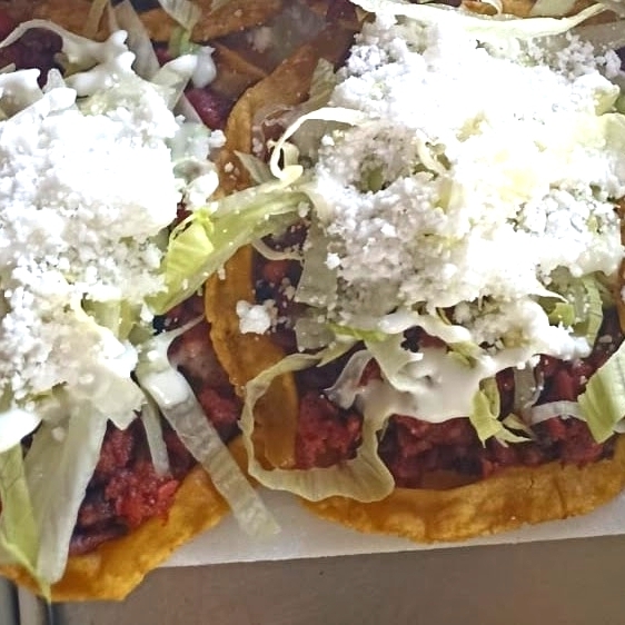 Orden de tres sopes de bistec con crema, queso y lechuga.