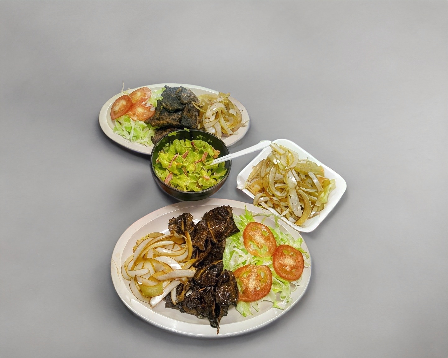 Bisteck, cebolla, jalapeño y tomate.