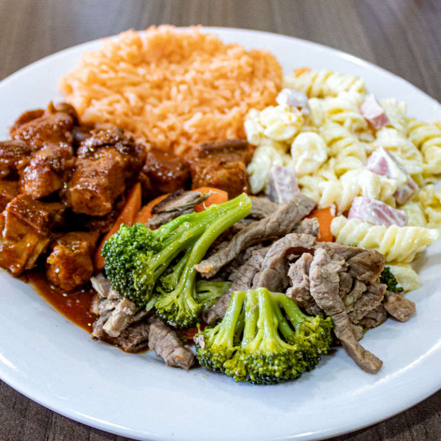 Una comida balanceada, casera y calientita, servida con porciones generosas para satisfacer tu antojo, incluye 2 guisos a escoger y 2 complementos.