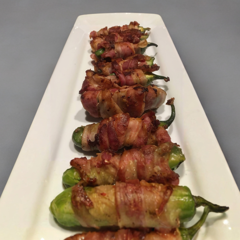 Chile jalapeño relleno de queso crema envuelto en delicioso tocino