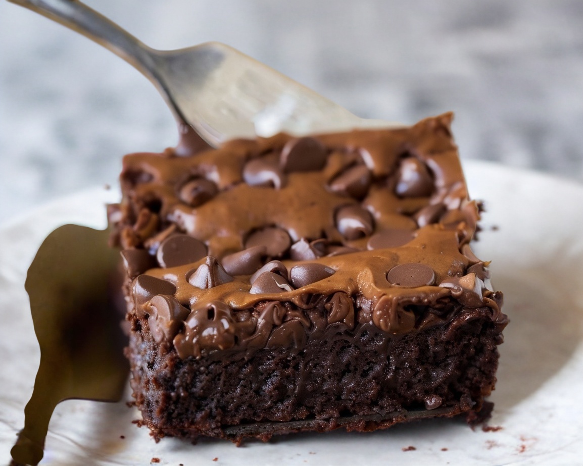Deliciosa pieza de brownie casero con chispas de chocolate
