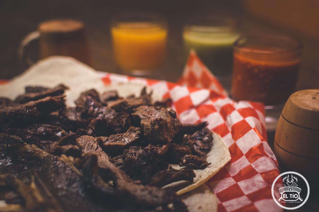 Asada bañada en jugo maggi. Incluye 5 tacos de maíz y deliciosa costilla.