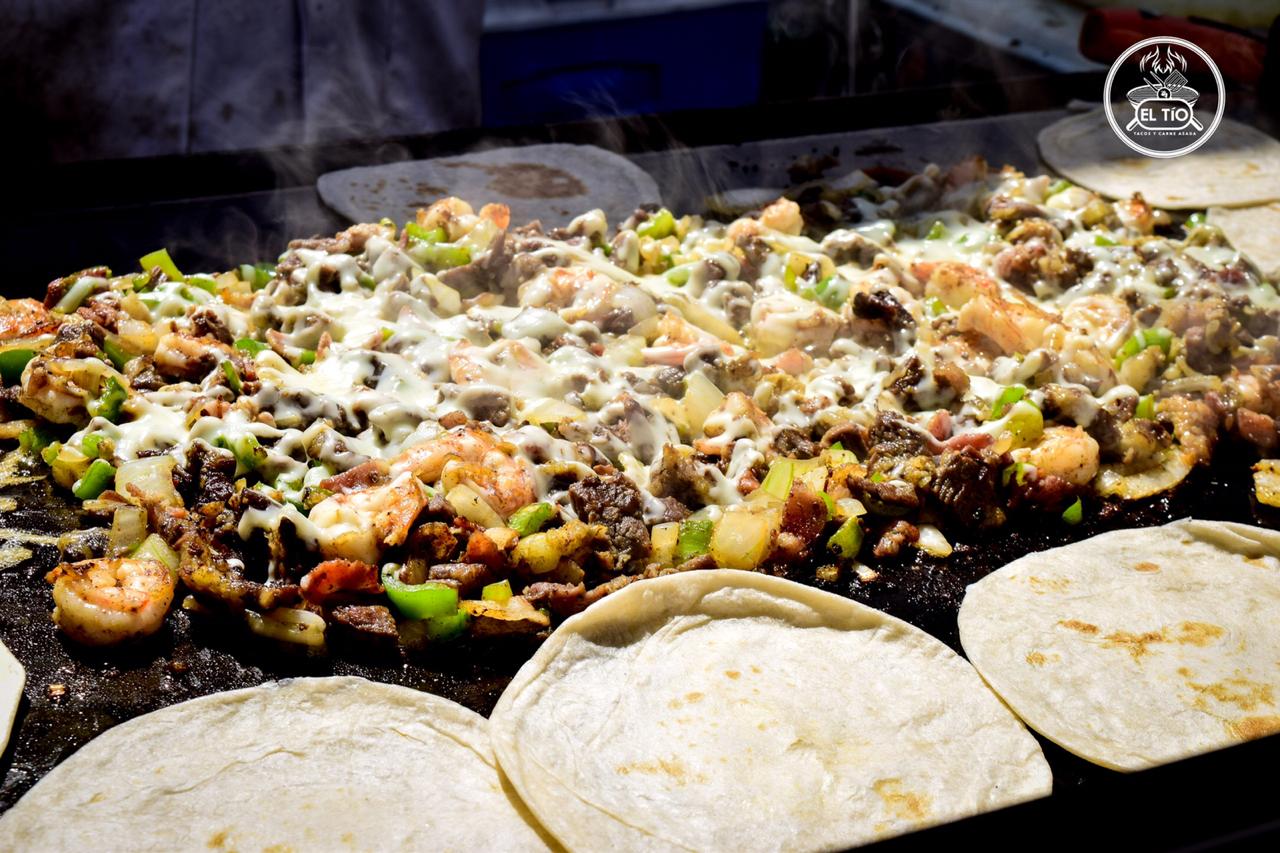 Incluye costillas de cortesía, salchicha para asar, cebolla caramelizada, toreados, tortillas y salsas.
