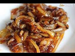 Porcion de cebolla salteada (1) a la parrilla con jugo maggi.