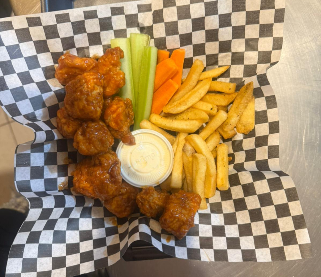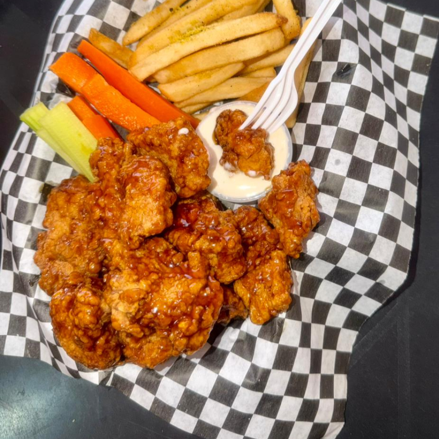 Crujientes boneles acompañados con verdura y en salsa a elegir: Buffalo, Mango habanero, BBQ y Teriyaki