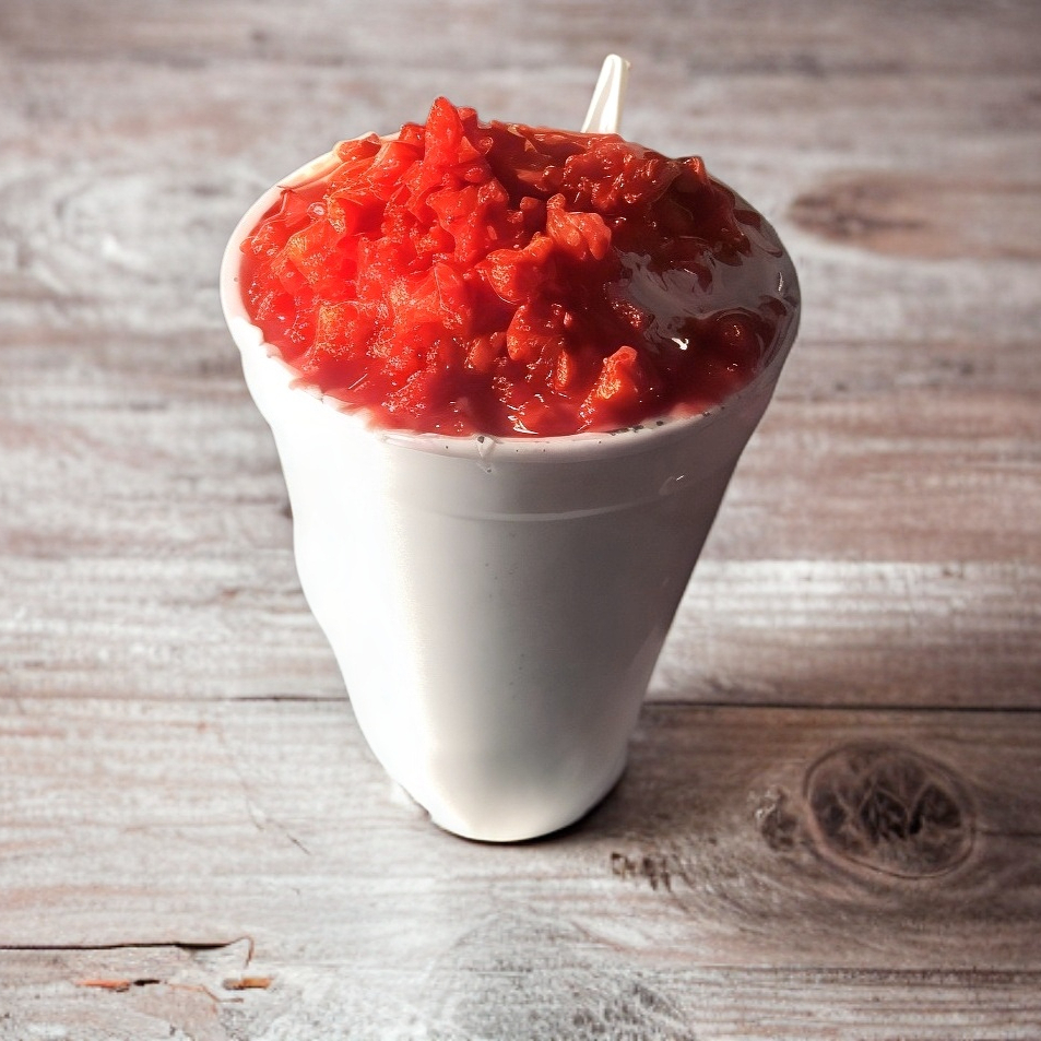 Maruchan con elote en vaso de 1/2 litro, incluyendo una cama de elote preparado en charola y papitas a escoger al gusto, mantequilla, crema, queso en polvo, queso amarillo, queso en barra rallado, limón, sal, chile en polvo.