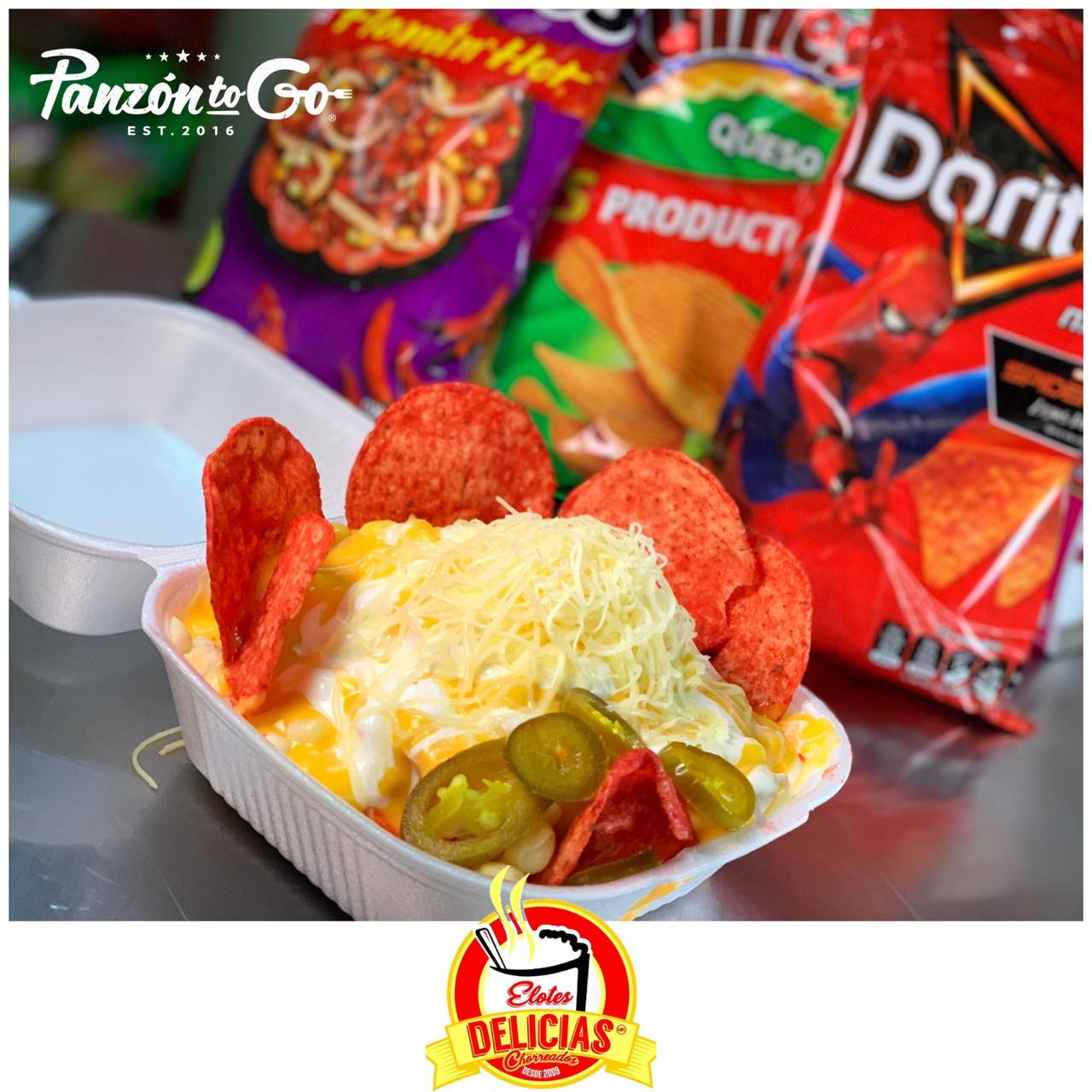 Preparados con elote desgranado, queso amarillo, crema menonita, queso chihuahua o queso blanco elotero y chiles curtidos. Si gustas puedes pedirlos con las papas aparte.