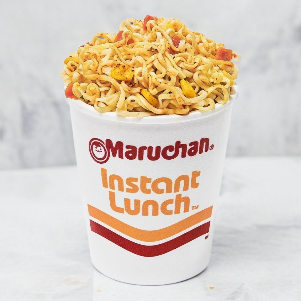 Maruchan con elote, limon, queso blanco, crema, aderezo chipotle y salsas