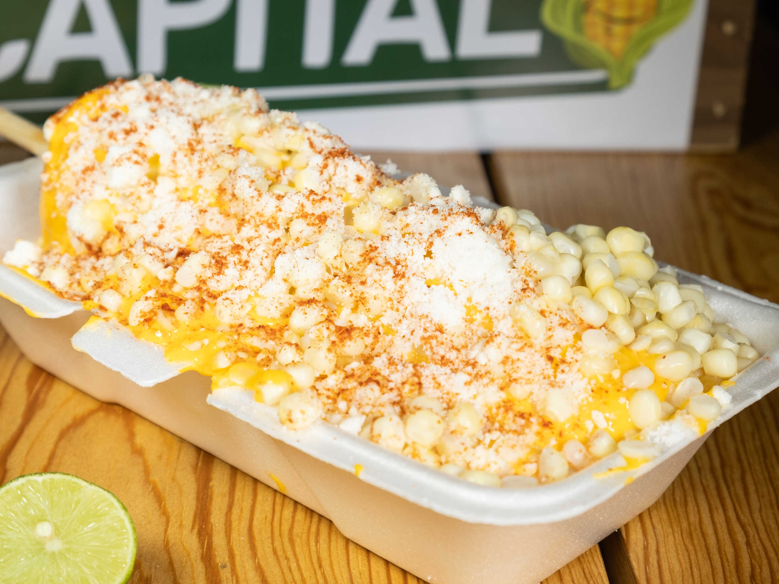 Elote Entero Con Elote Desgranado y Queso Amarillo.