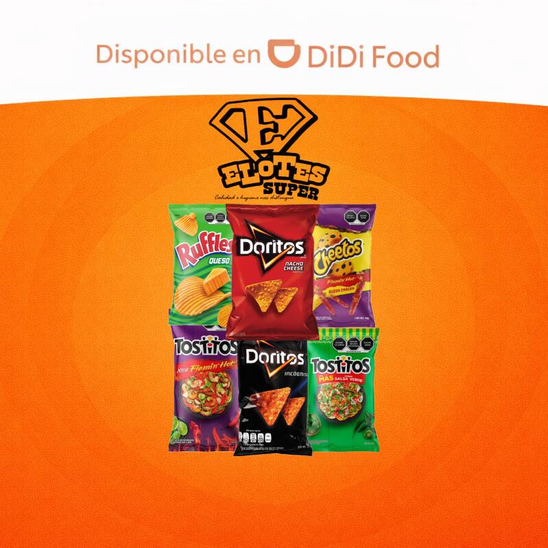 2 Paquetes de papitas, queso amarillo, elote, queso blanco, crema y chile curtido.