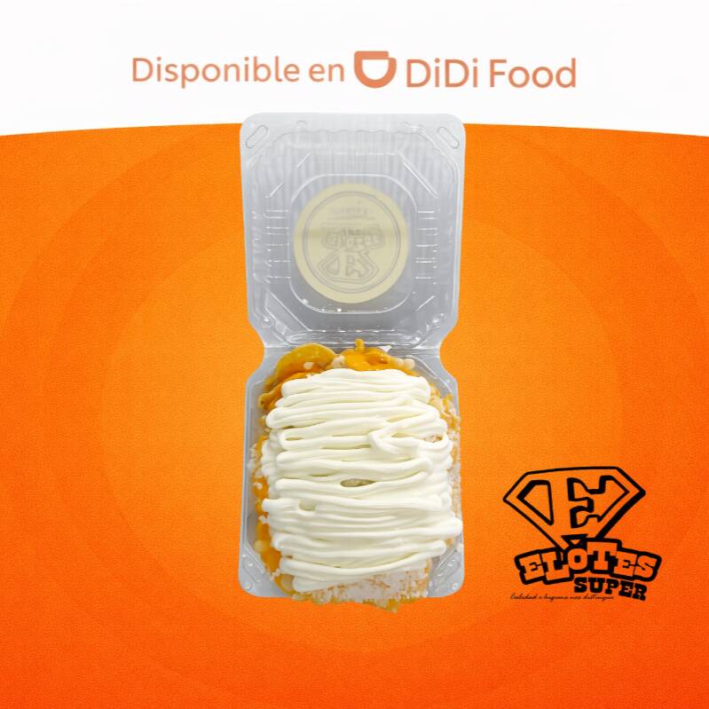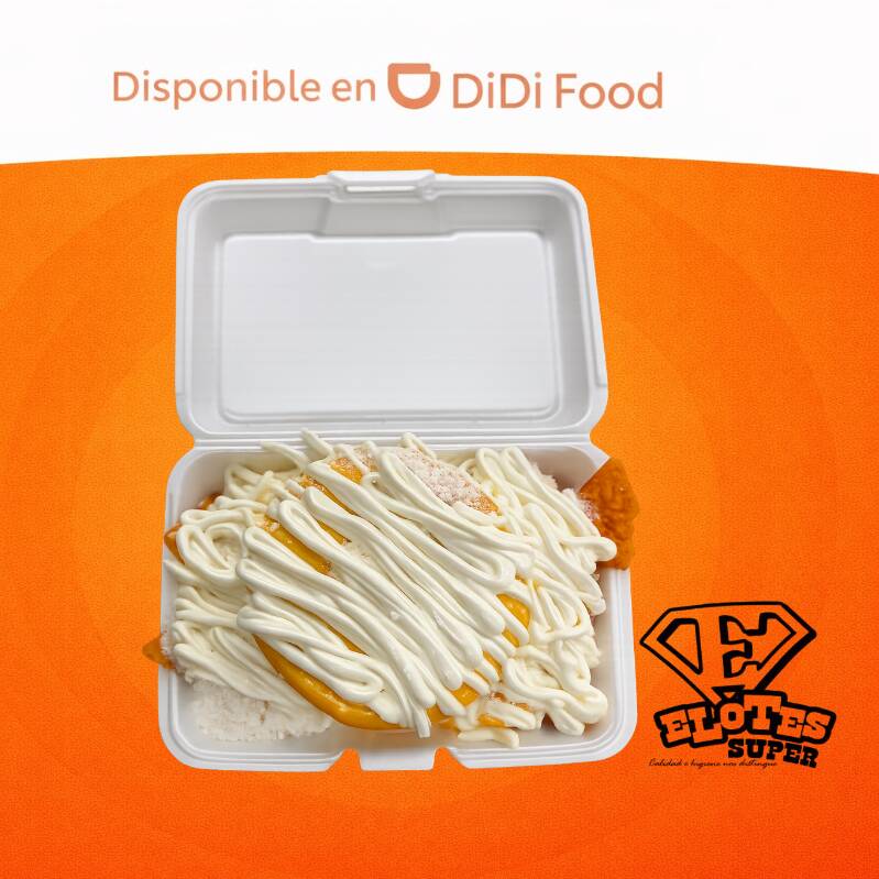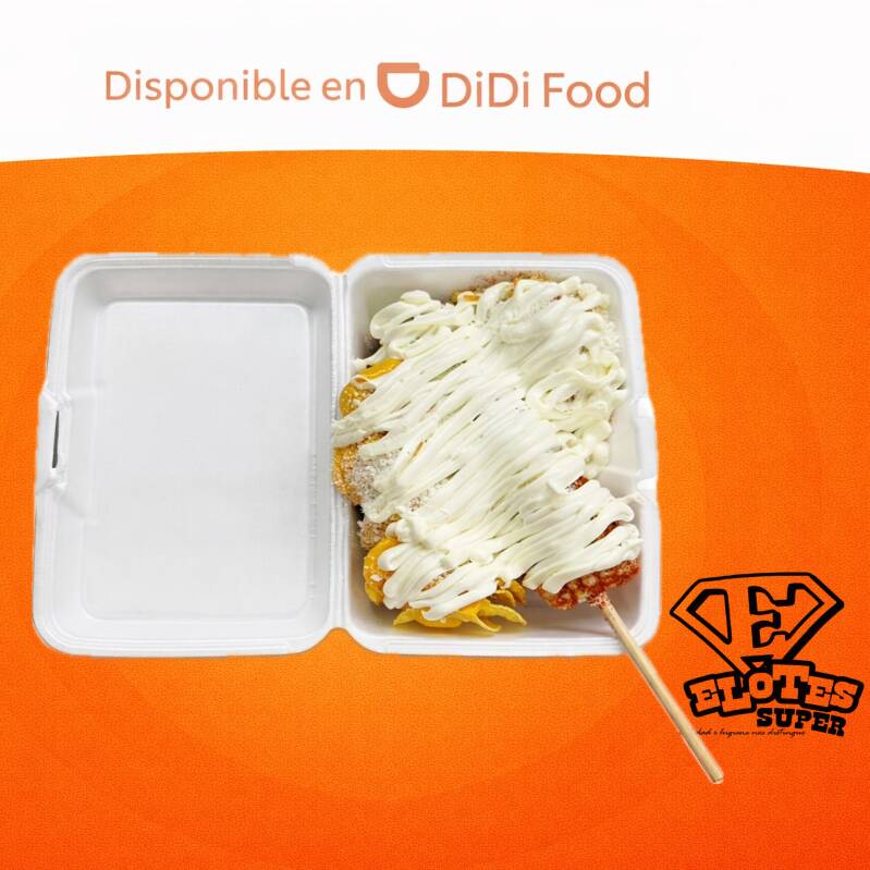 1/2Lt elote, 1 papitas, mantequilla, limón, chile en polvo, queso blanco, queso amarillo y crema.