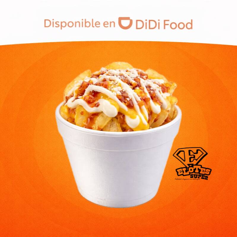 Papitas, queso amarillo, elote, queso blanco, crema y chile curtido.