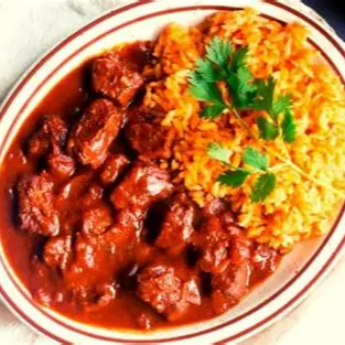 acompañado de arroz, deliciosos frijolitos