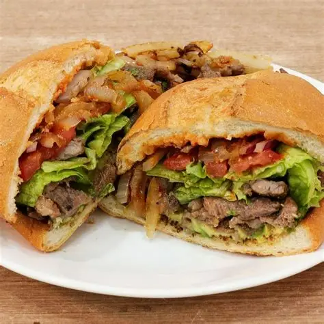 suave y jugoso bistec, con queso jamón lechuga tomate cebolla y aguacate.