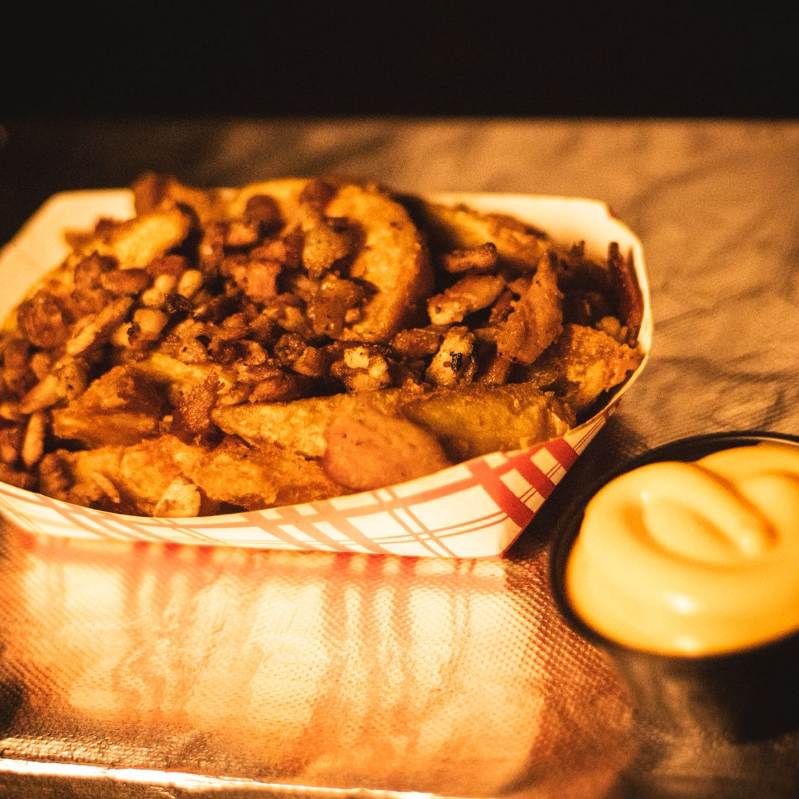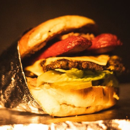 Pan, carne 100 % de res, aderezo mixto catsup, mostaza, mayonesa y especias, dos quesos blancos, dos quesos amarillos y queso de papas, pepinillos, cebolla y lechuga.