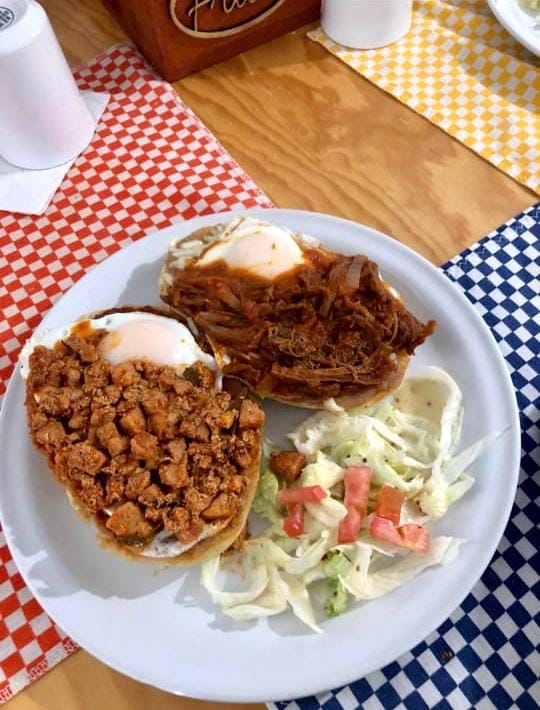 Dos huevos estrellados montados en penca de nopal, bañados en salsa de tu preferencia. Acompañados de frijoles y chilaquiles verdes o rojos o alguno de los guisos. Si deseas puedes agregar guarnición extra de guisado.