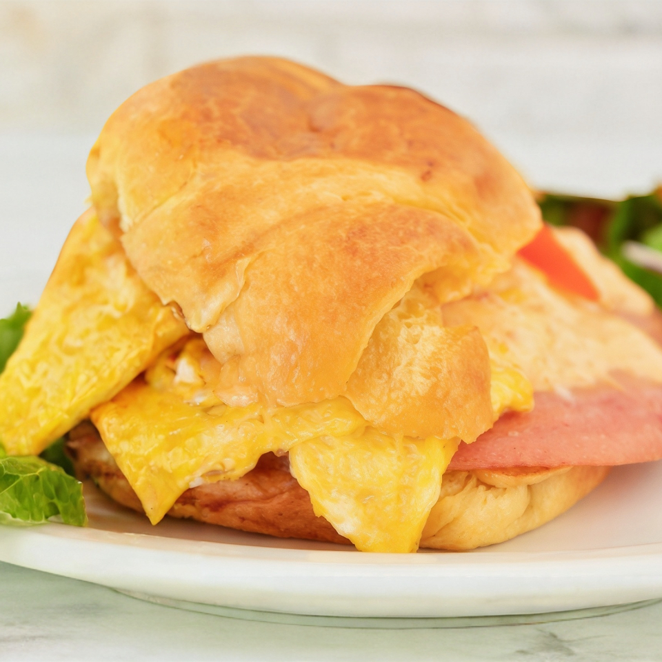 Pan cuernito con queso menonita derretido y cuadritos de pechuga de pollo