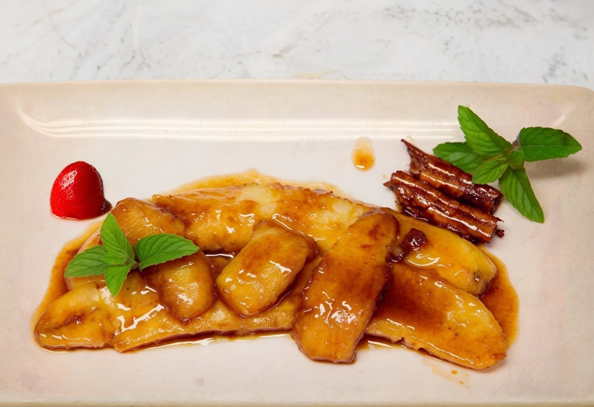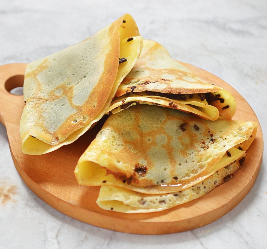 Crepa dulce con la receta de la casa, rellena con cajeta y plátano.