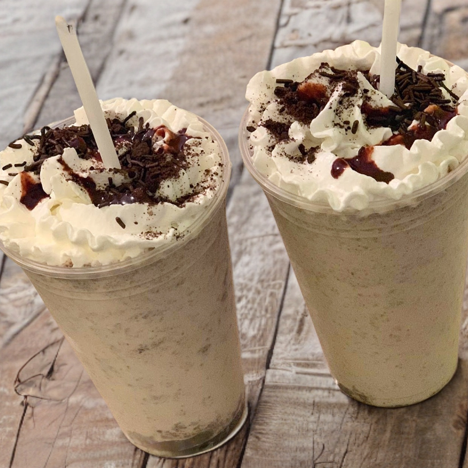 Malteada mediana sabor Oreo acompañada de crema batida.