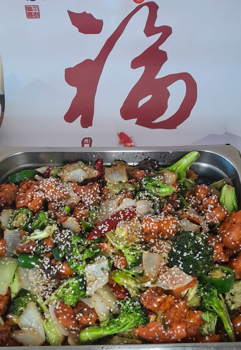 Delicioso pollo agridulce poco picoso, preparado con vegetales y chile jalapeño ,acompañado con salsa agridulce, una combinación de sabores incleibles
