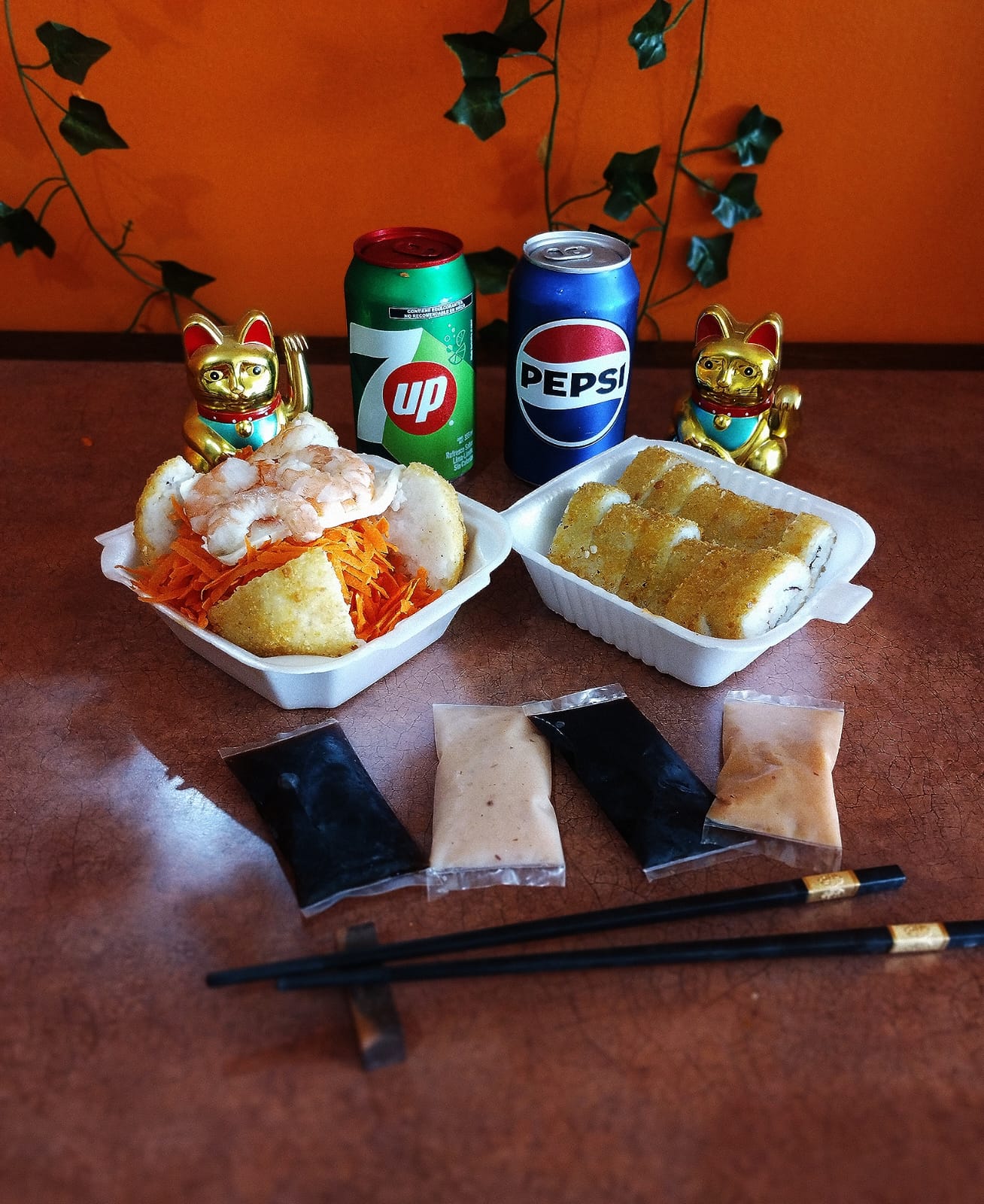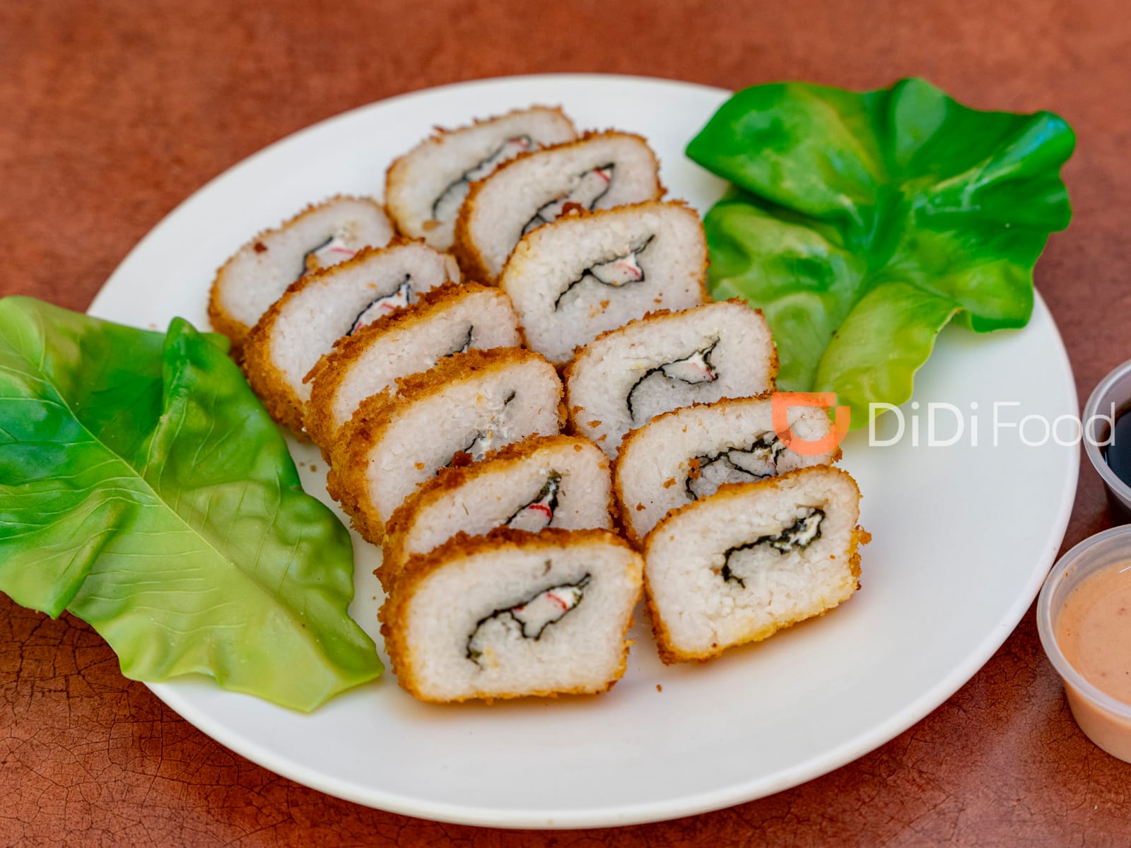 6 piezas de suchi empanizado,preparado con surimi,queso filadelfia.