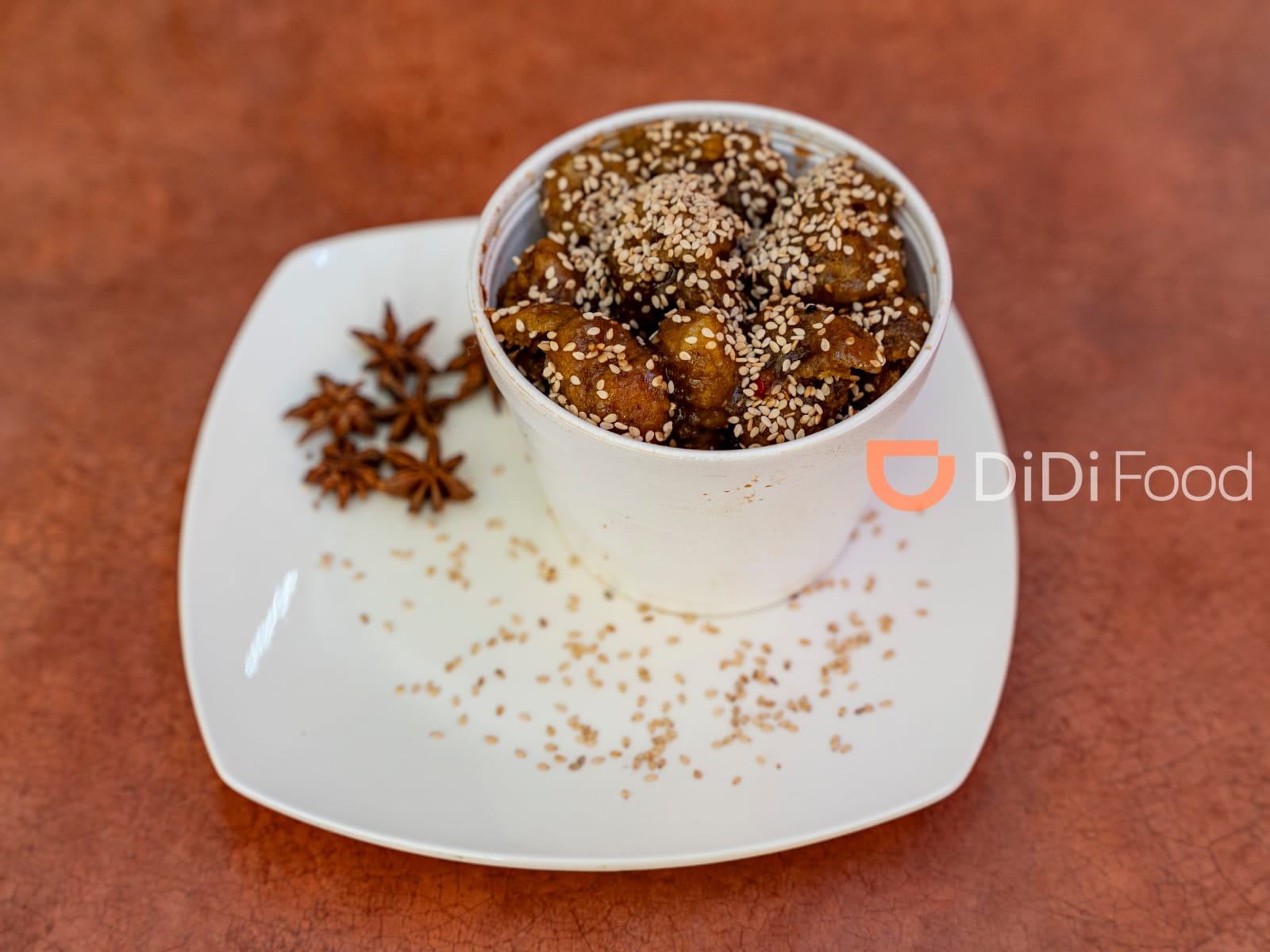 Trozos de pollo ,empanizado con una deliciosa salsa agridulce en ajonjoli.