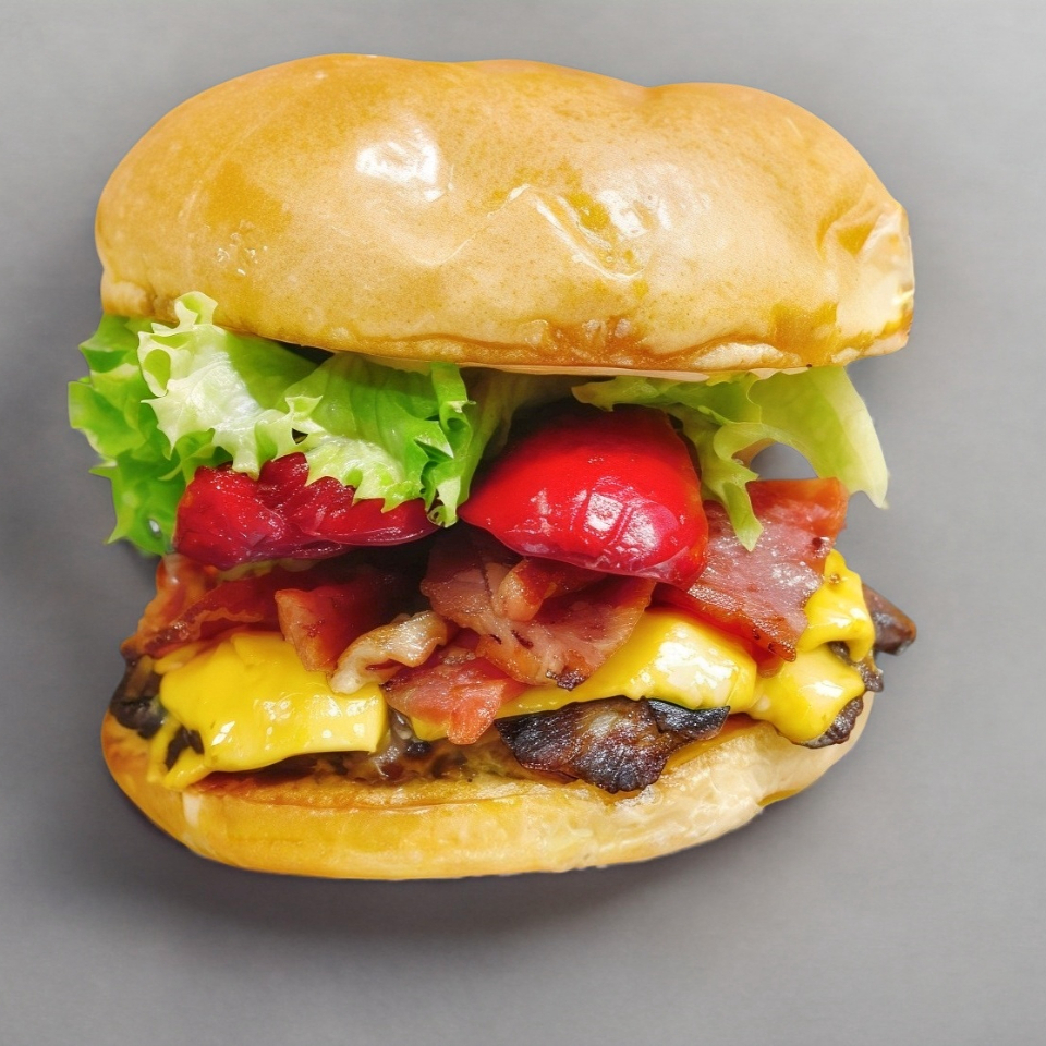 cheeseburguer con verdura y cebolla frita