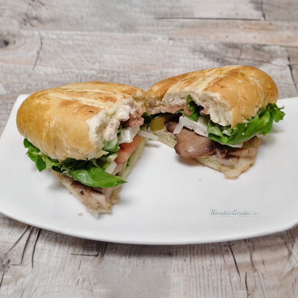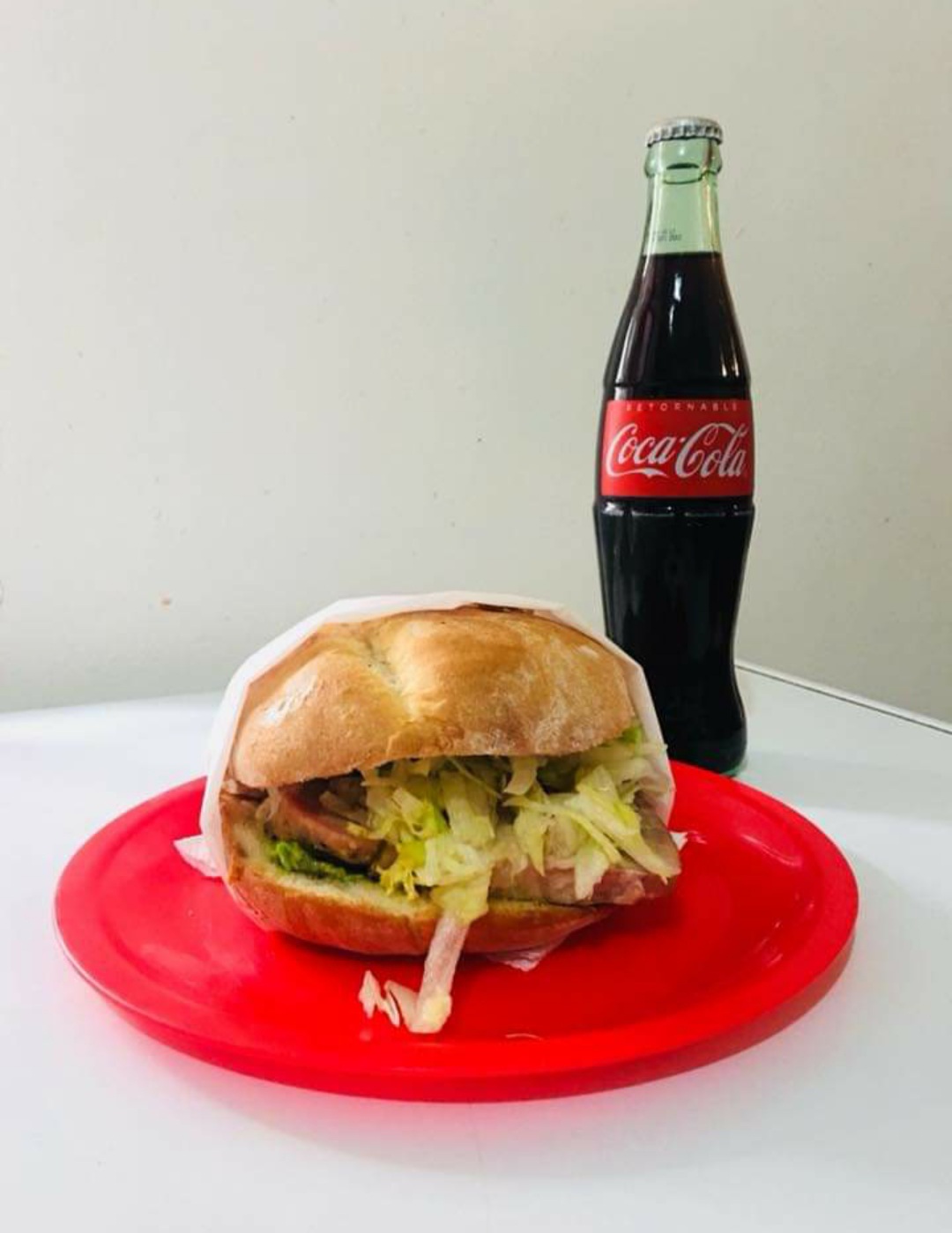 Aguacate, aderezos, tomate, cebolla, lechuga y lomo.