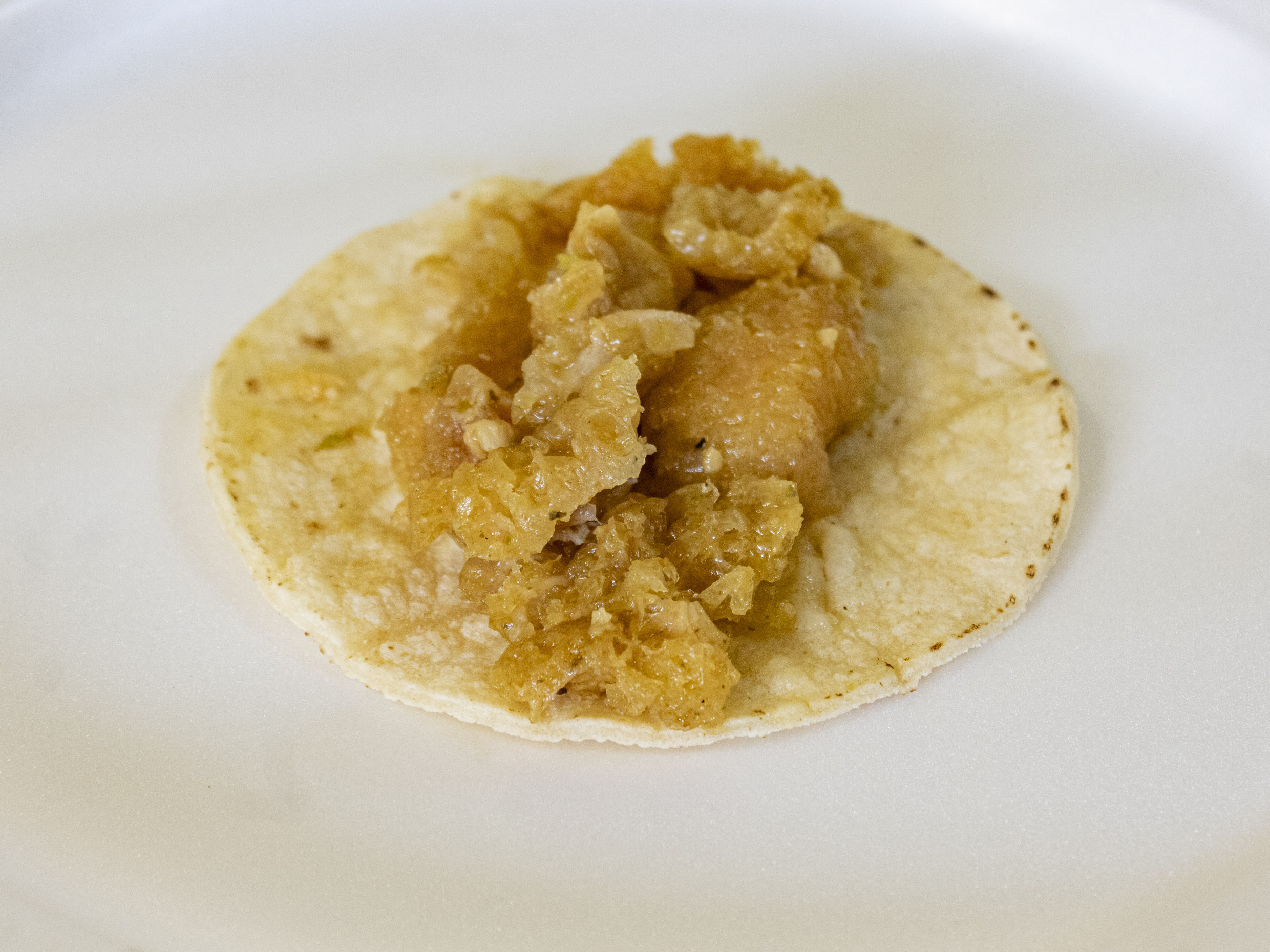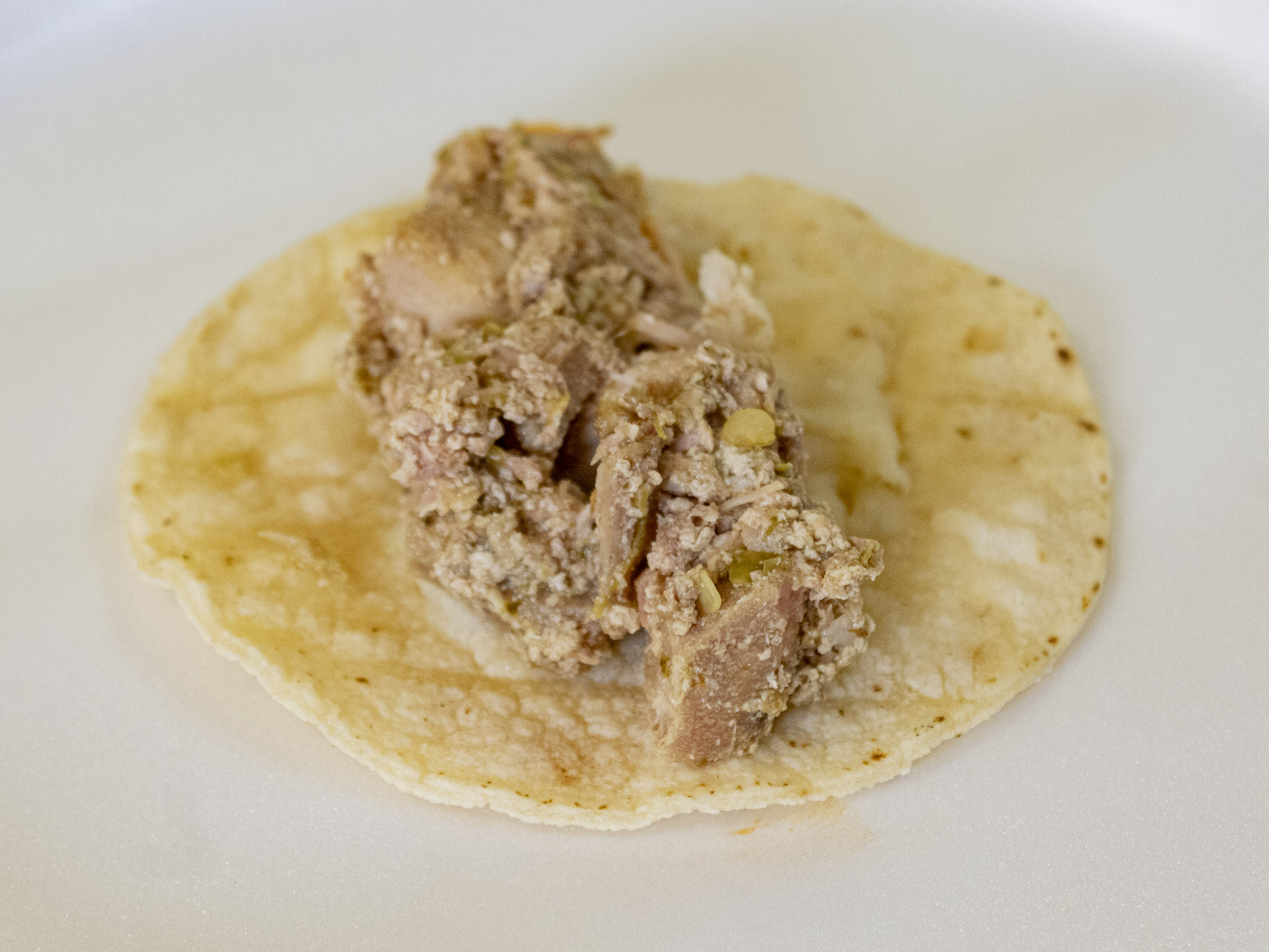 Suave y esponjosa gordita de harina, recién hecha. Rellena generosamente con chicharrón de cerdo guisado en nuestra salsa verde. ¡Un clásico con un sabor vibrante!