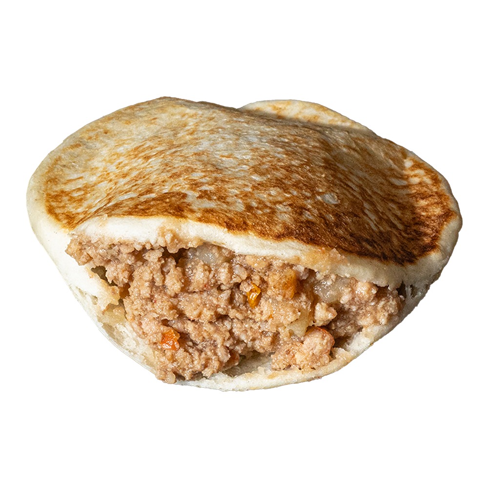 Suave y esponjosa gordita de harina, recién hecha. Rellena generosamente con nuestro tradicional picadillo de res, sazonado con verduras y especias. Un clásico completo y delicioso.