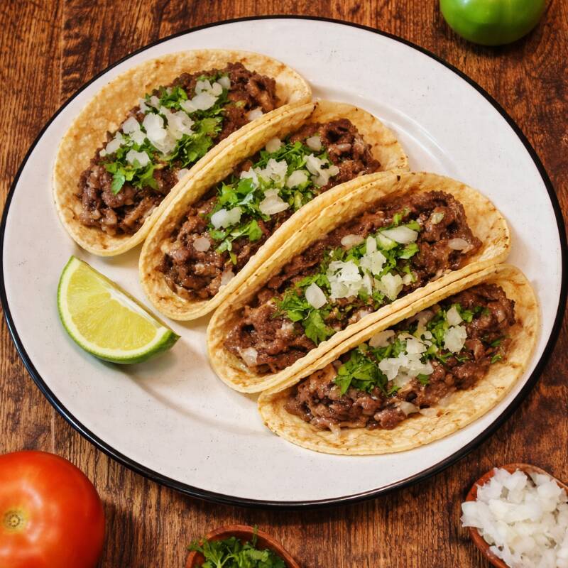 4 deliciosos taquitos de barbacoa de puritito cachete de res, preparada con la receta de la tia Luly