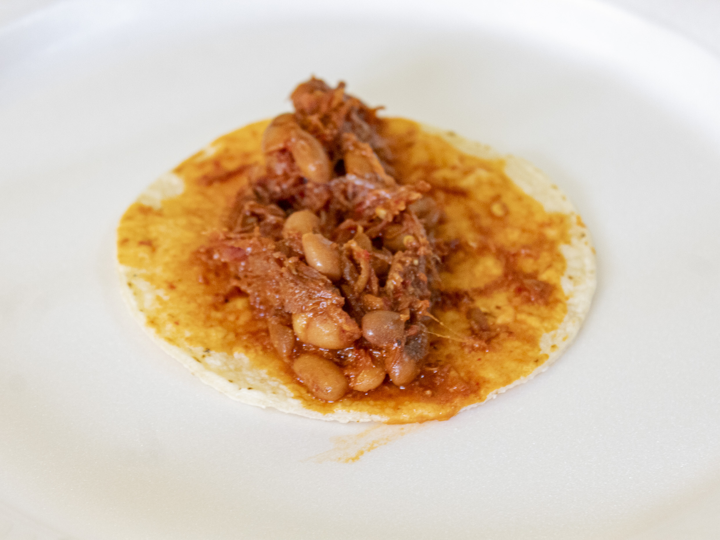 Suave y esponjosa gordita de harina, recién hecha. Rellena generosamente con carne de res deshebrada en salsa roja de chiles selectos de sabor intenso. Un clásico reconfortante.