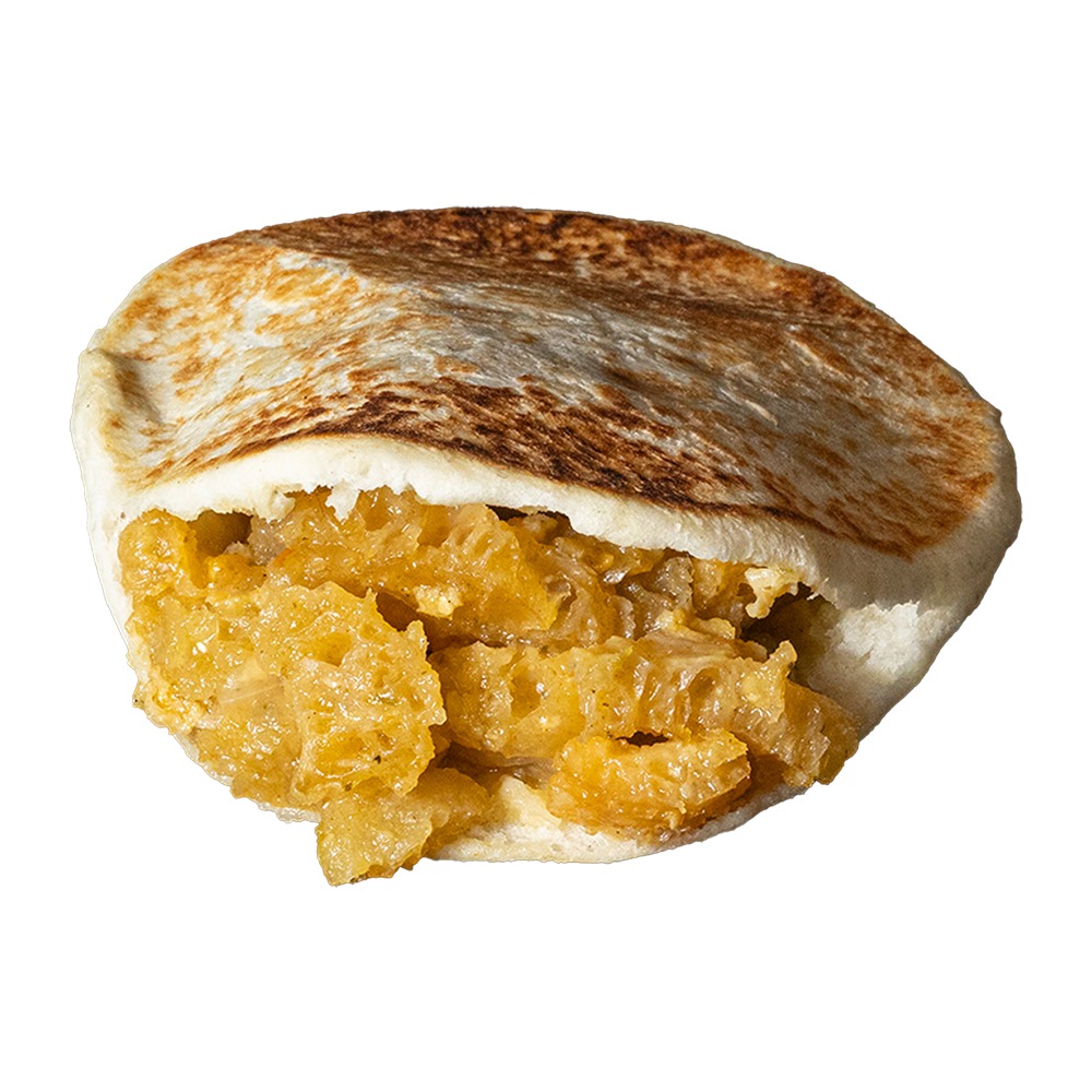 Suave y esponjosa gordita de harina, recién hecha. Rellena generosamente con jugosa cochinita pibil. El toque vibrante del sureste en tu mano.