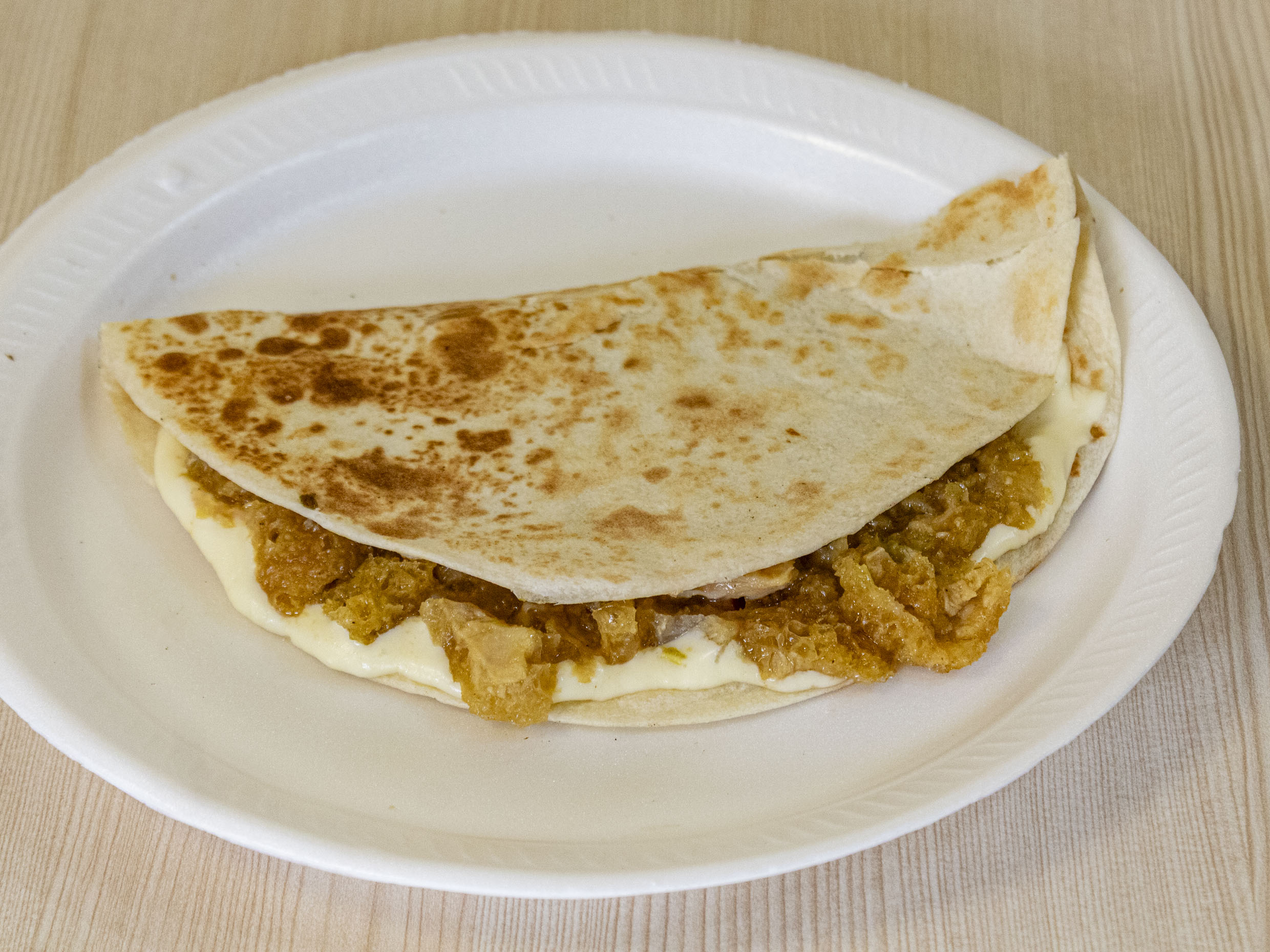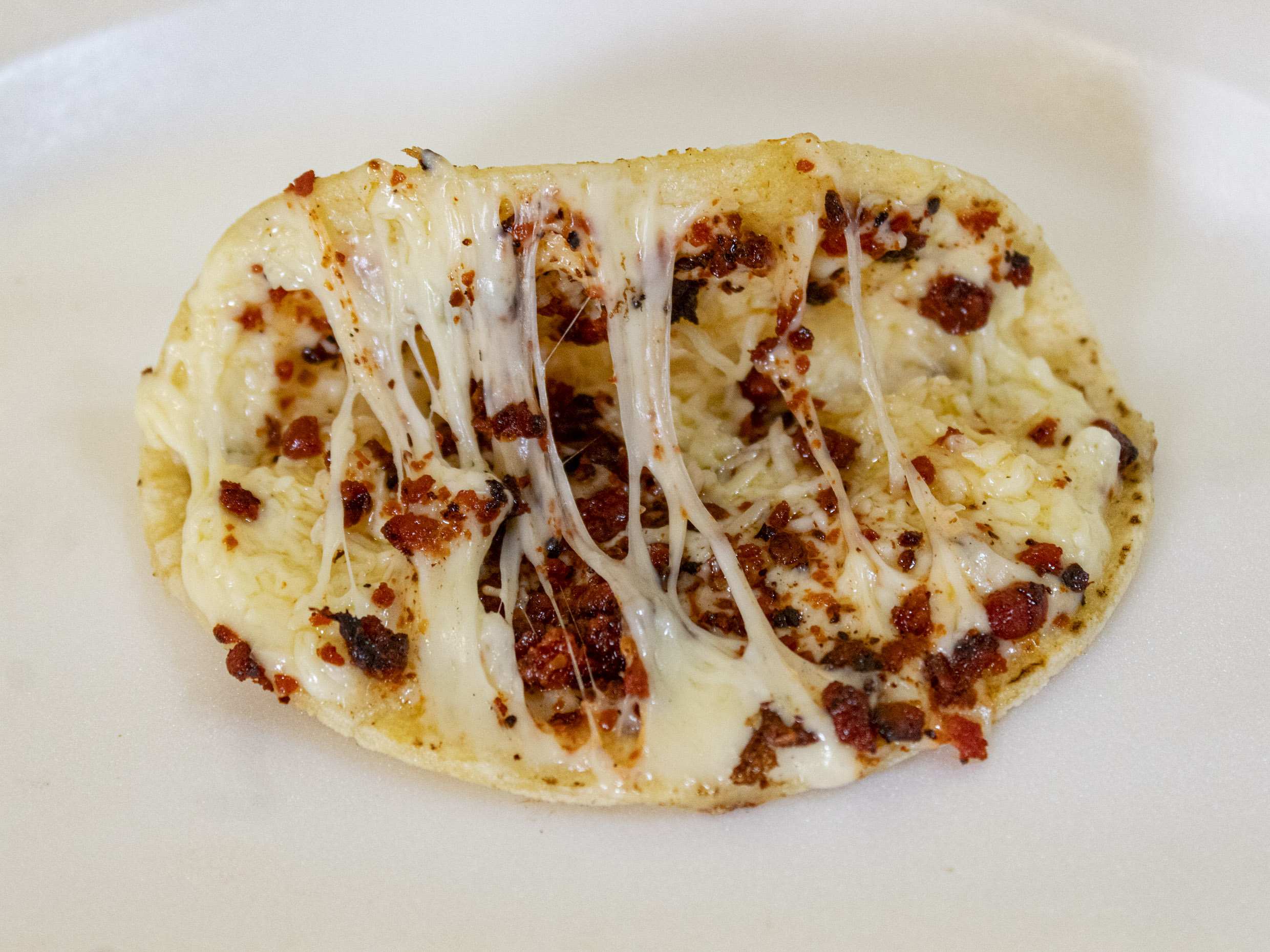 Suave y esponjosa gordita de harina, recién hecha. Rellena generosamente con cremoso queso derretido mezclado con chorizo. La combinación perfecta de sabor y textura.