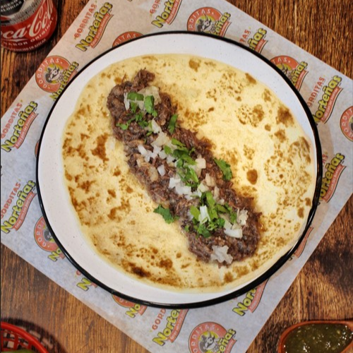 Suave y esponjosa gordita de harina, recién hecha. Rellena generosamente con machaca de res de primera guisada con huevo esponjoso. Un clásico norteño lleno de sabor y tradición.