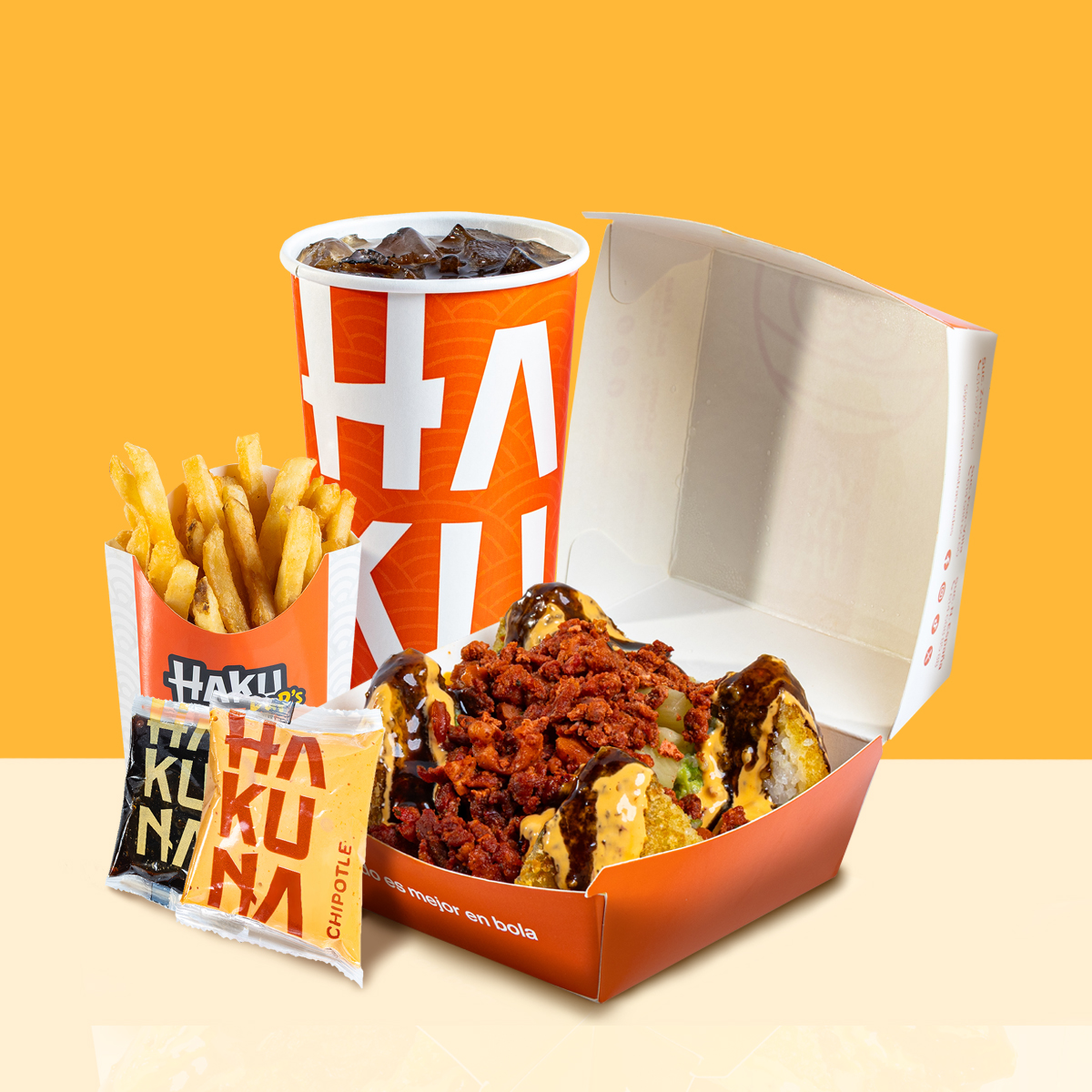 Bola de arroz + Bebida Mediana + Papas Medinas