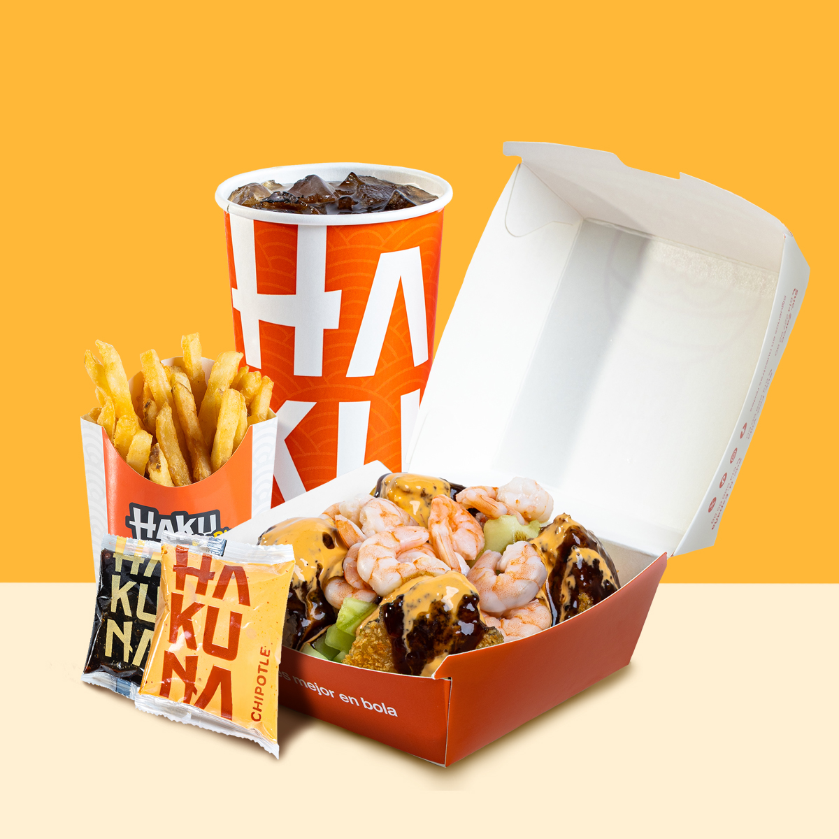 Bola de arroz + Papas Medianas + Bebida Mediana