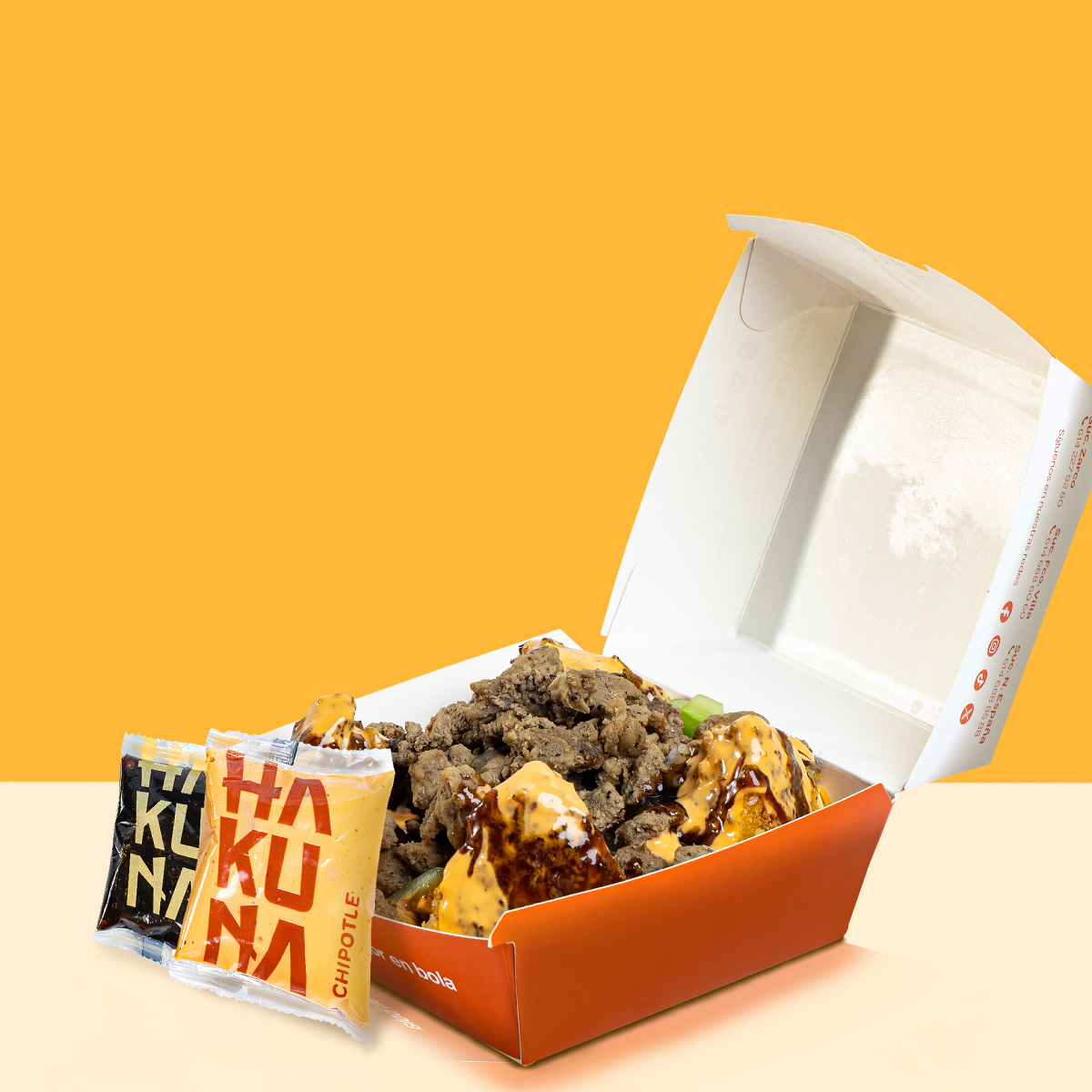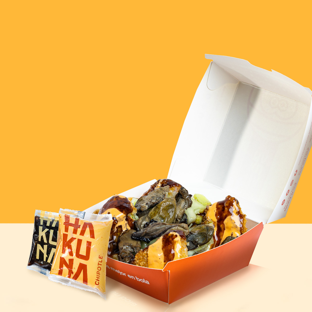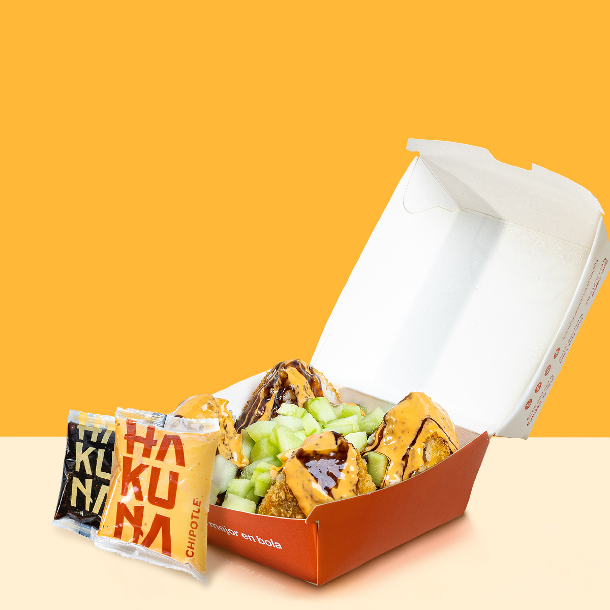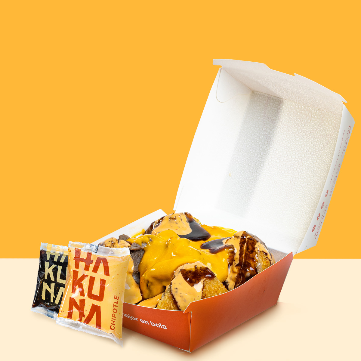 Bola de arroz con pastor + papas a la francesa + refresco 600 ml.