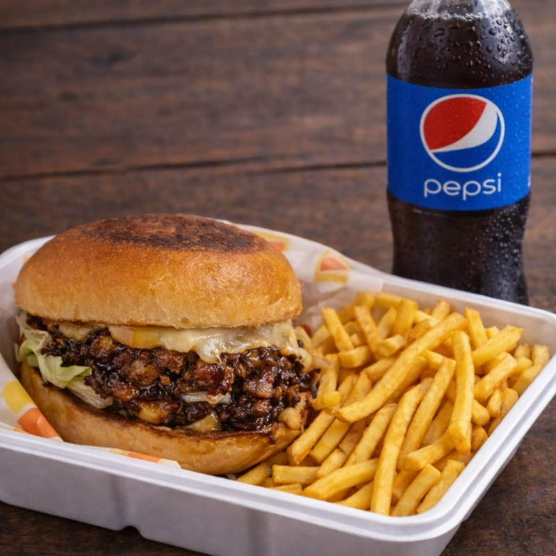 BACON JAMBUGER*1 + REFRESCO (400ML)*1 + PORCIÓN PAPAS INDIVIDUAL*1