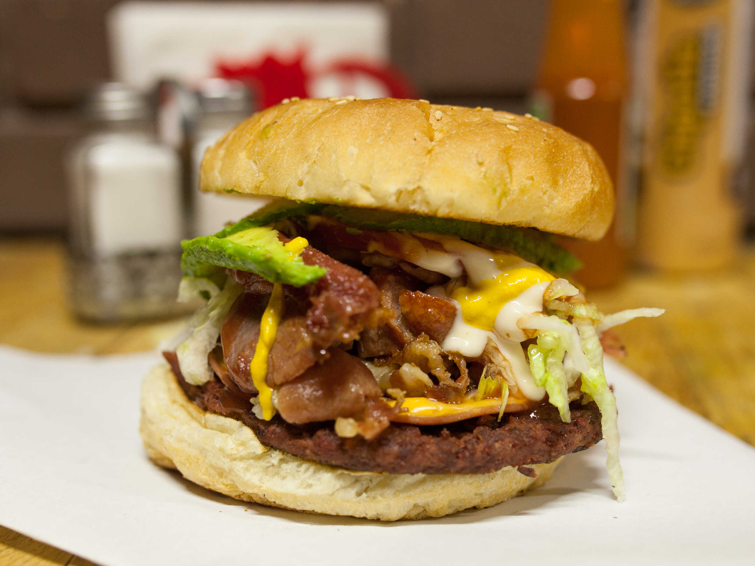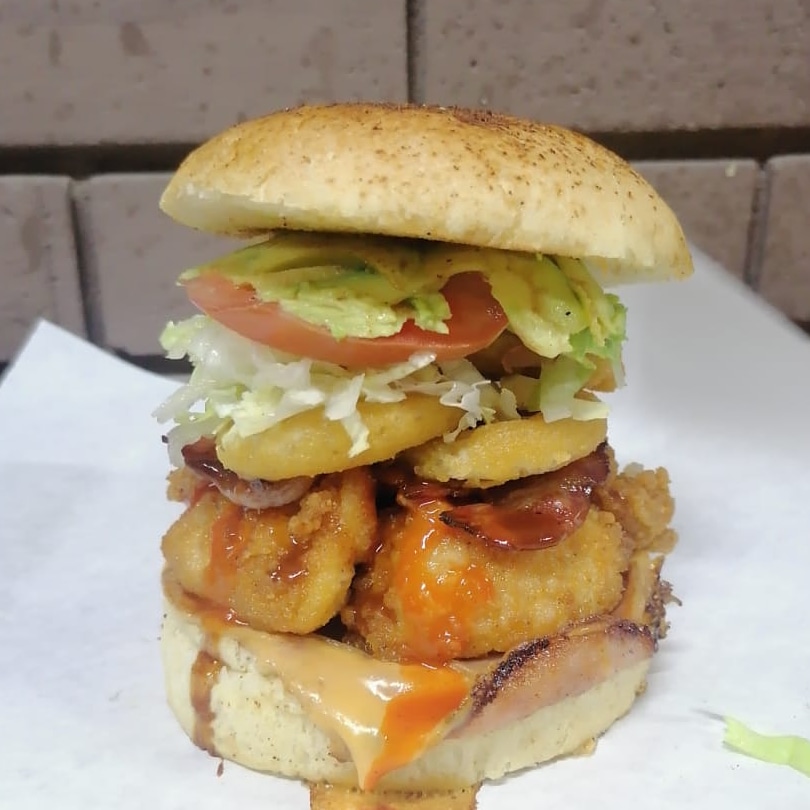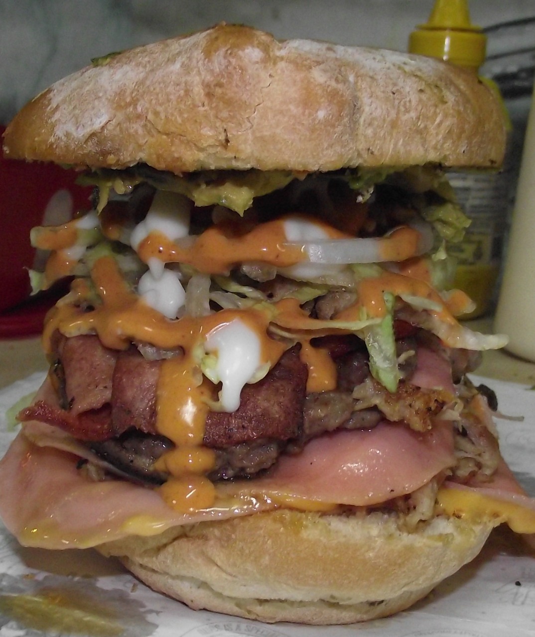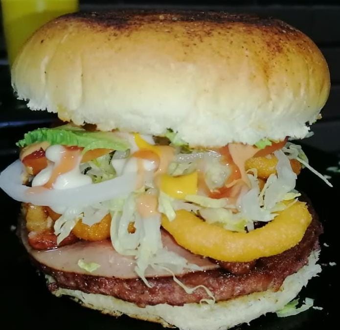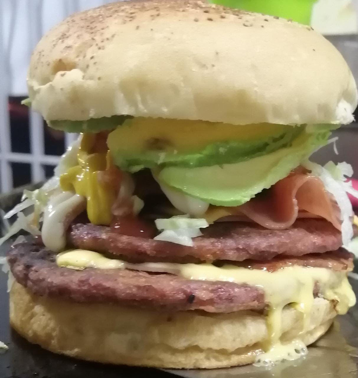 Doble carne de hamburguesa, lomo, tocino, jamón, queso y verdura