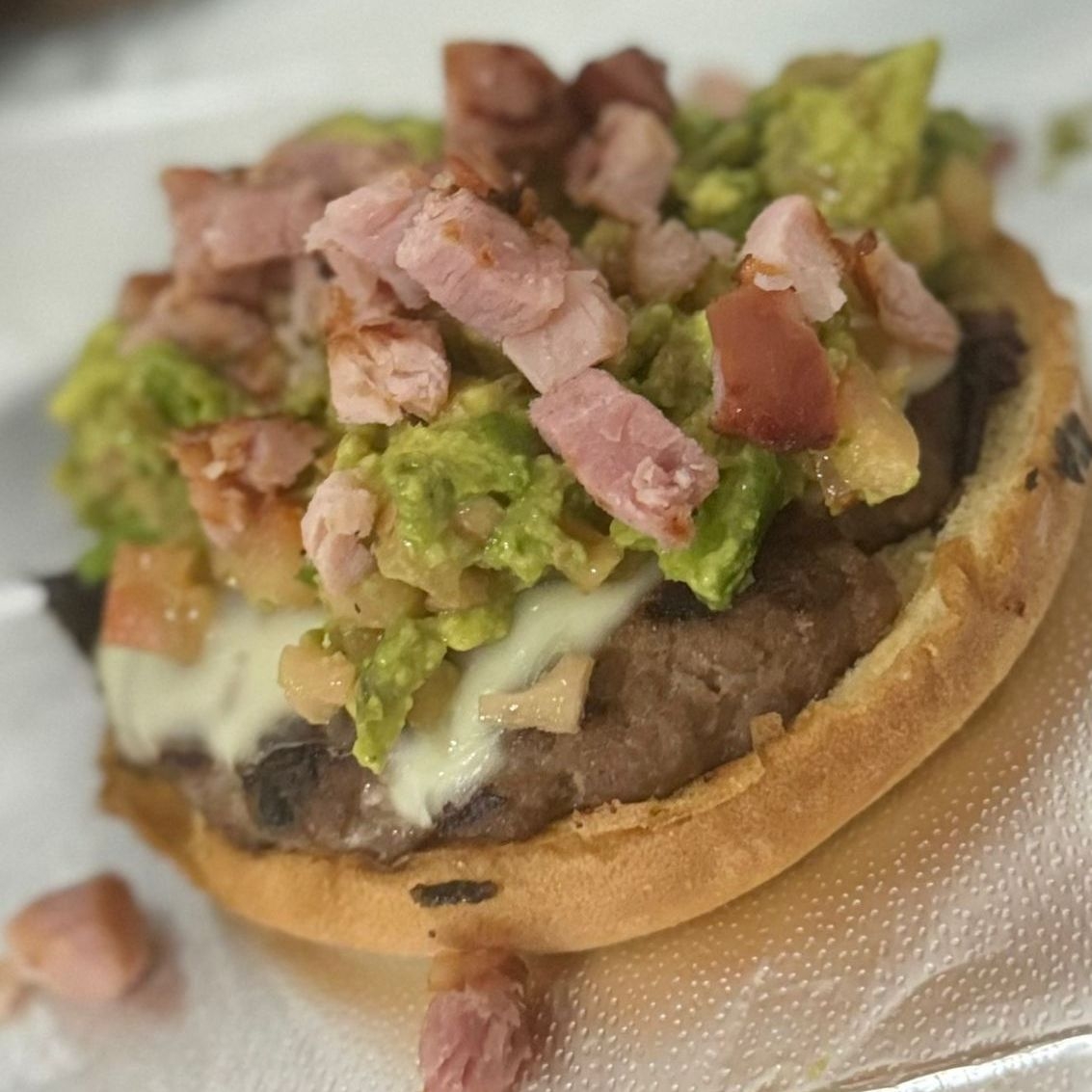 150 Gramos de carne de picaña, guacamole con pico de gallo, cebolla caramelizada, queso y tocino en delicioso pan brioche.