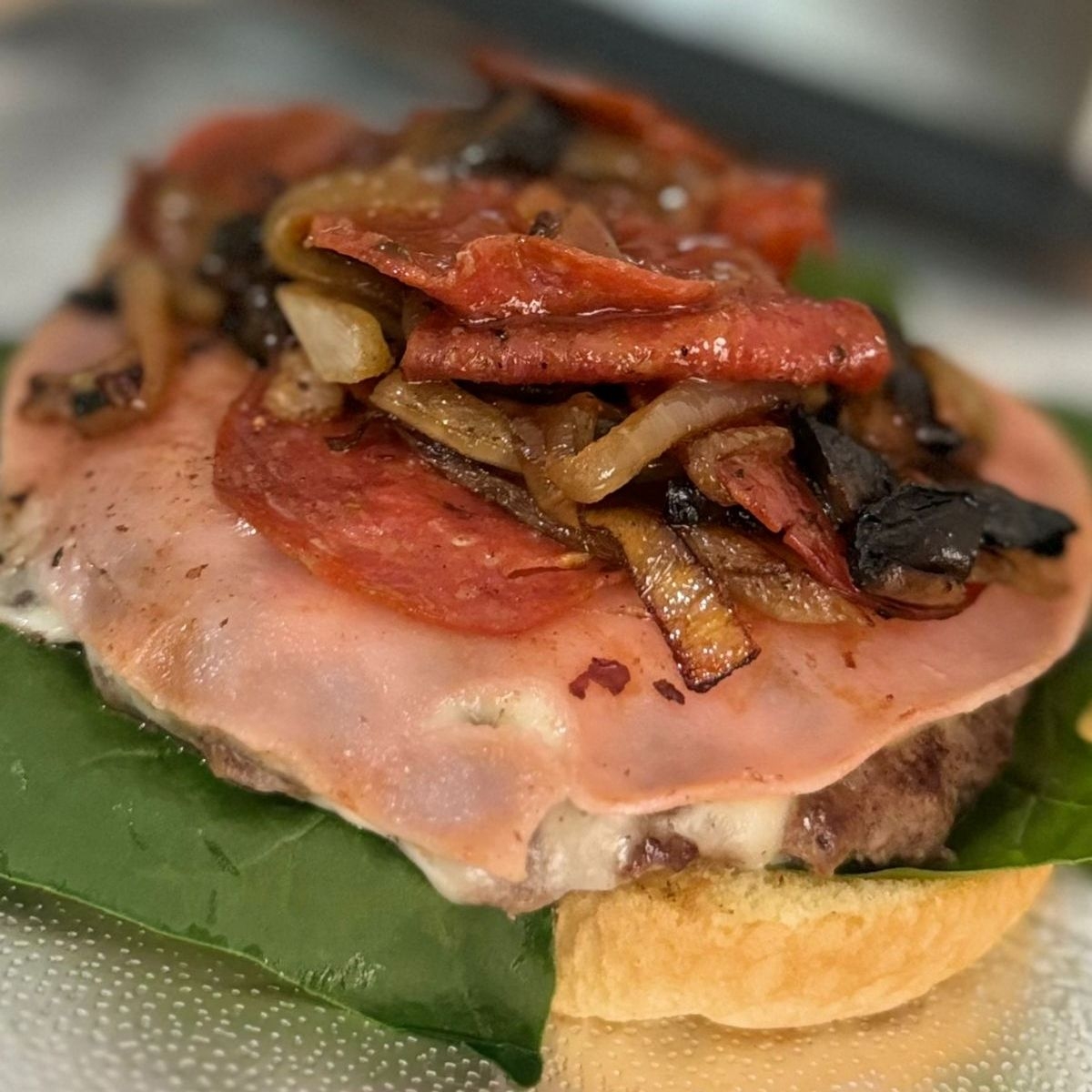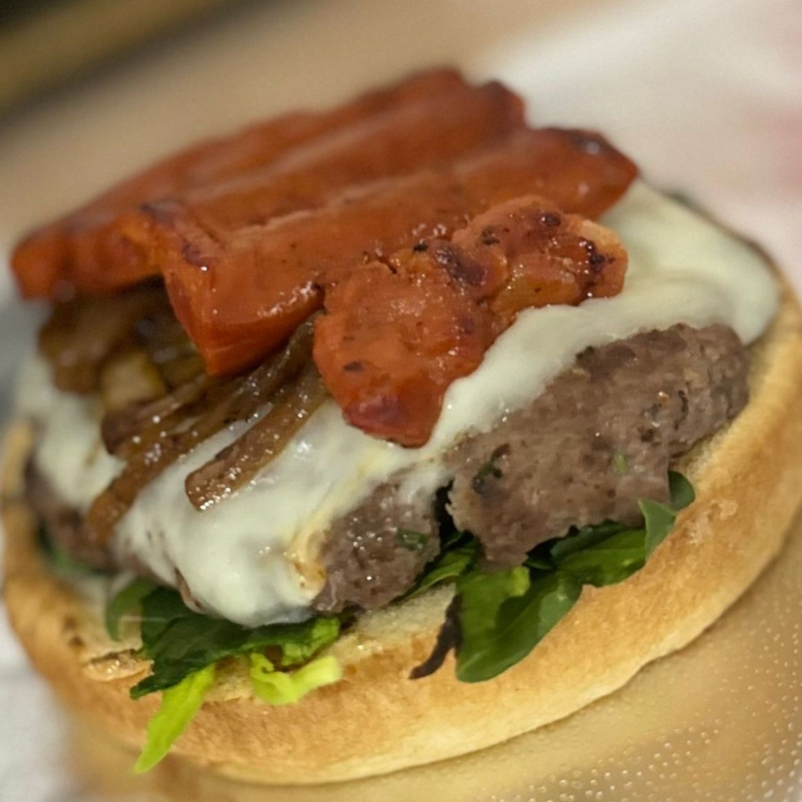 150 Gramos de carne de picaña, espinacas, champiñones, pepperoni, queso mozzarella y salsa boloñesa en delicioso pan brioche.
