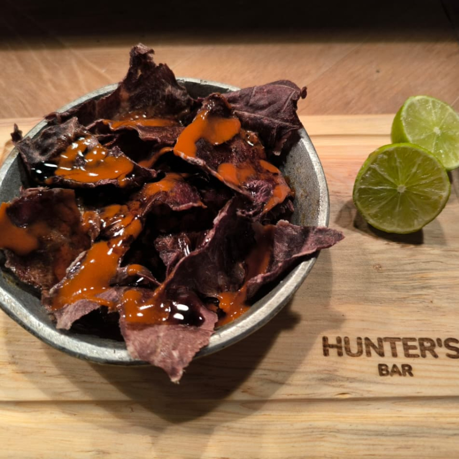 Carne seca preparada con clamato, limon, picante y salsas negras