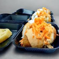 Bola de arroz empanizada, rellena de queso crema, aguacate y tu ingrediente favorito con un topping de zanahoria y jicama. Bañadas en deliciosa salsa chipotle y anguila.